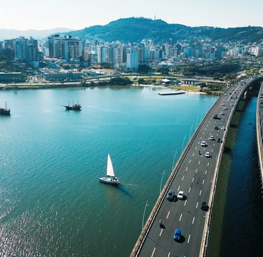 🏖️ 28/12 – Dia livre na praia. Após o almoço, City Tour em Florianópolis + passeio no shopping